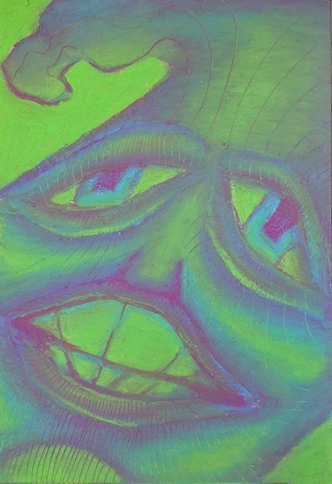 I think I balanced the colors wrong or used an entirely different green halfway through. The background and top half are way more limey while the bottom half seems less warm and more cool?? 😔 man