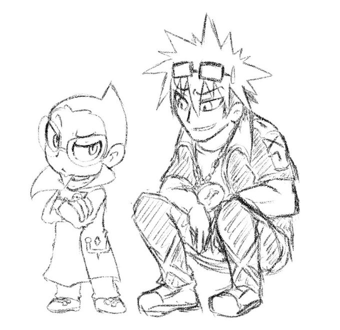 きのこと毒鮫さんが描いてくれたグズマル先生と幼坊教頭を載せます🥳めちゃくちゃかわいい🥳