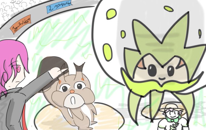ライチさん(@MMMkddd )が 1つ目のジム戦でダイマックスの敵相手にとまとみや(ホシガリス)を出した時のファンアート書いてくれました!