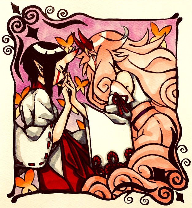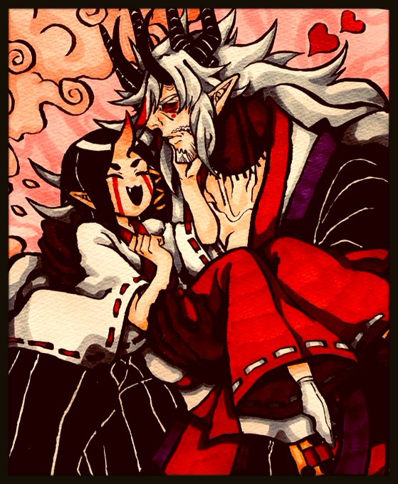 「春は曙」 1枚目 前世夫婦 2枚目 鬼童丸/虎熊(獣) 3枚目 ロリ百合ズ #大江ノ鬼