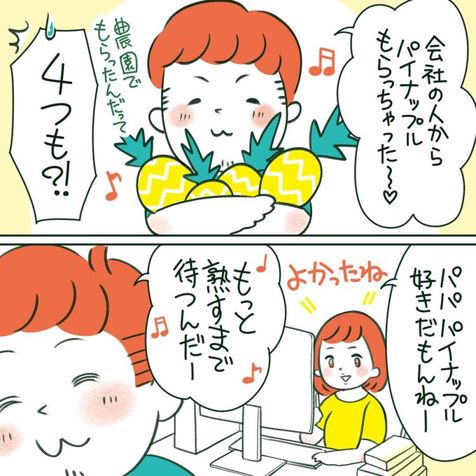 ある日パパがパイナップルを持って帰った話 #イラストエッセイ #コミックエッセイ #日常漫画 #子育て漫画 #2歳 #マレーシア生活 #パイナップル