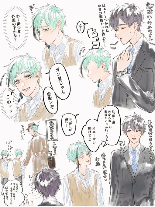 この前やった年齢タグのやつでフロ監♂の現パロ?描きたいとこだけ(1/2) 22歳就活中の監くんとお父さんのお仕事に付いてきたフロくん13歳 #twstプラスB