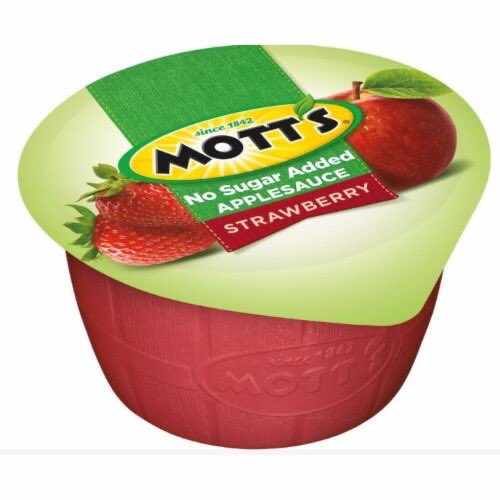 *he grabs a single container of strawberry apple sauce and leaves*