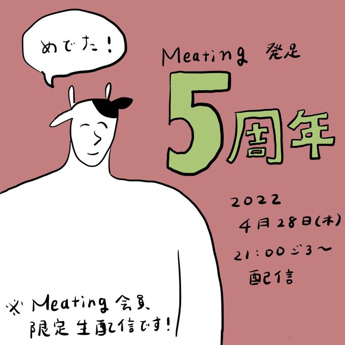 Meating発足5周年記念生配信は、本日21:00から!