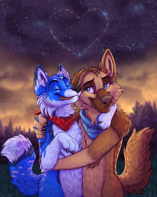 I haven't really posted art in awhile so here's a piece I completed a couple of weeks ago for the lovely @BluesugarDK of himself and @KaineShepherd cuddling under the stars <3