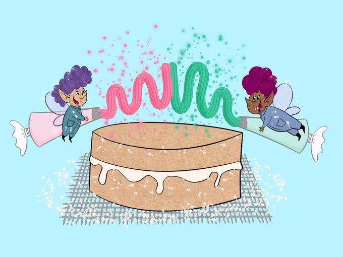 A very late #DrawMoor @BeckaMoor Prompt was ‘ Two naughty fairies baking a cake’ #illustration