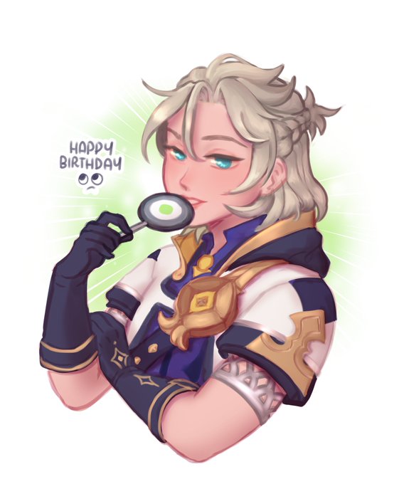 @jengarie_draws drew albedo for my bday 🥺 xe even incorporated the aro flag colors on the lollipop, i love everything about this sm hnggnggg thank you ㅠㅠ