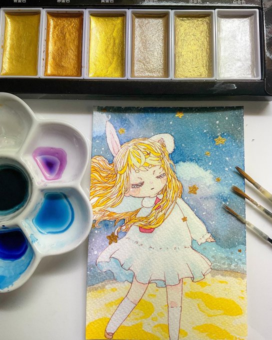 水彩メインで描いてます!!でもデジタルも描きます! 今は気分の絵柄やタッチで楽しく描いてます。