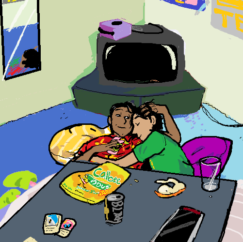 An mspaint commission for @neckspike who wanted a KiriEmu + kotatsu cuddles!