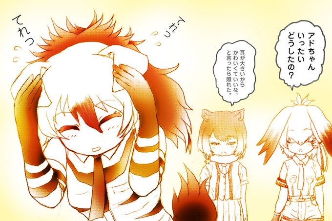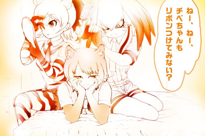 「二人の髪をとかしてあげるハシビロちゃん」 #けものフレンズ #ハシビロコウ
