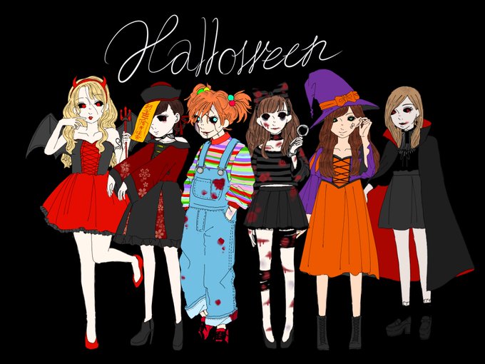 ハロウィン仮装したすぎて、とりあえずチャッキーの仮装描いてたら楽しくて止まらなくなった。ハロウィン大好き。 #絵描きさんとつながりたい