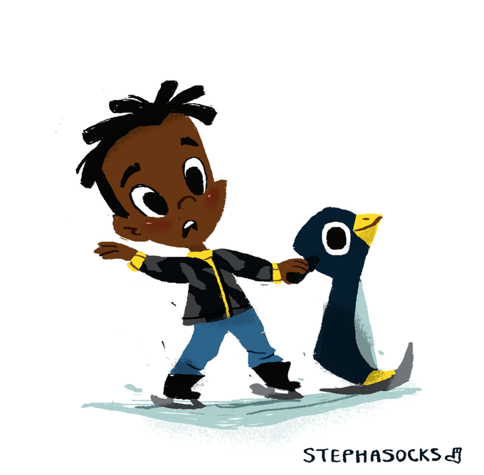 Advent kid day 5, learning to ice skate with one of those penguin things haha #illo_advent #illustration