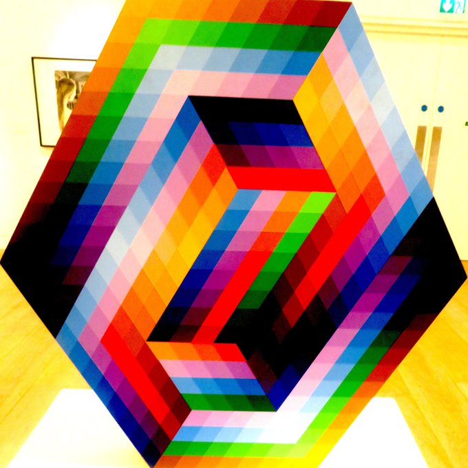 My picture, French Hungarian artist @victorvasarely artwork "Kezdi" a wooden sculpture multiple hand-painted in acrylic, limited edition, signed in pencil circa 1989-90 on sale at @phillipsauction London #artist #credited #asthe #godfather #leader #opart #movement #artpost #art