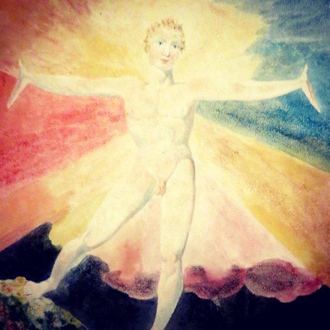My picture of poet & artist William Blake artwork, Frontispiece to 'Visions of the Daughters of Albion' he created using his invention, this is a method of printing in relief from etched plates circa 1795 At William's solo exhibition in @Tate Britain, London, Show ends 2/2/2020