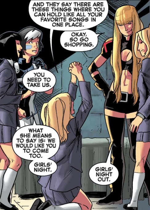 That time when the Cuckoos and Eva Bell begged Illyana to take them shopping.