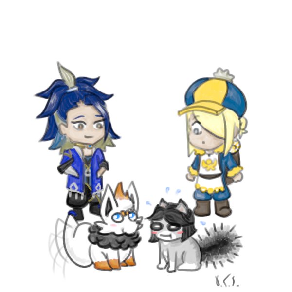 I tried to draw Kitten and Leon the Zorua with Adaman and Volo, because the #PokemonLegendsArceus thirst is real