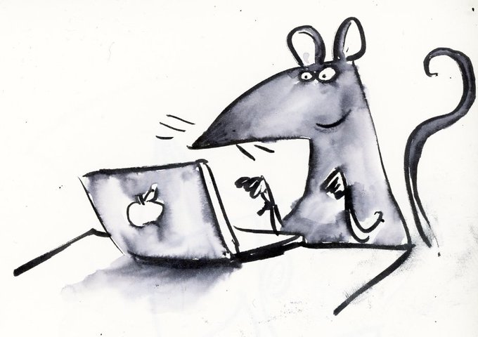 Here's a picture of a rat using a Mac Book drawn for the sheer JOY of procrastination!