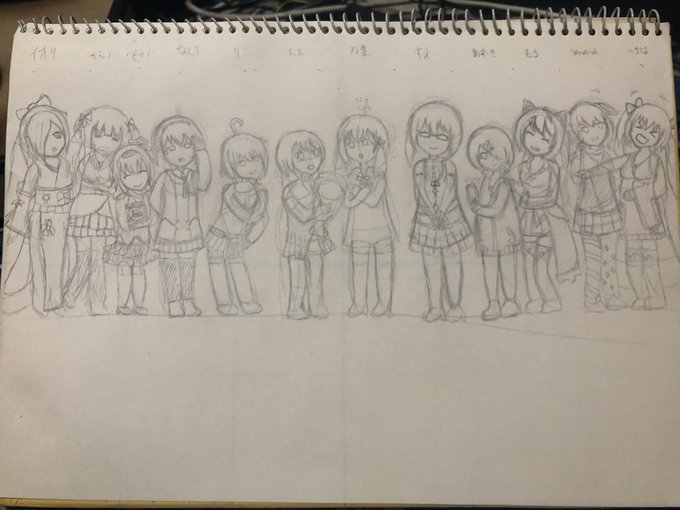1枚目、等身も低くてバランスもめちゃくちゃだったからボツ 新しく描き直して2枚目、仕上げが3枚目…2枚目が1番いい気がする:( ;´꒳`;):