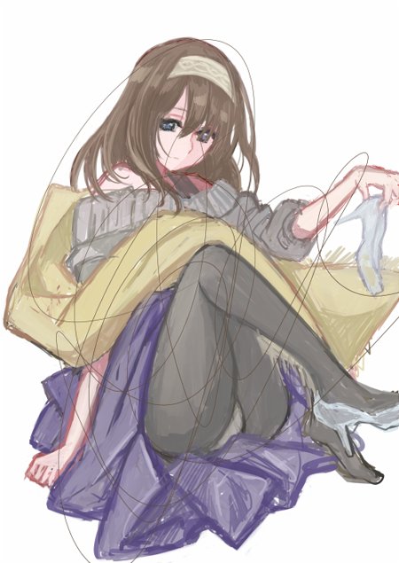 あのぐちゃぐちゃって線描いた奴にそってお絵かきするやつ。落書きがてら練習した。パンチらすまそ。隠しきれなかった…