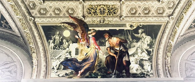 個人的に気に入った天井画はヴァチカン美術館の燭台のギャラリーのとこ 絵のタッチとか色合いがすき(なんか写真だと変に補正かかって色が上手くでてないんだけども) 一枚目、天使たちの見て!!って圧が強くていい 布教してる時のオタク感ある(?)