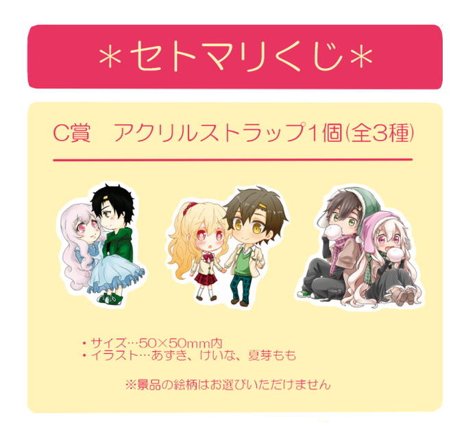 こちらが訂正版になります…!本文サンプルのまとめと、ノベルティのくじの景品(アクリルストップ)です!