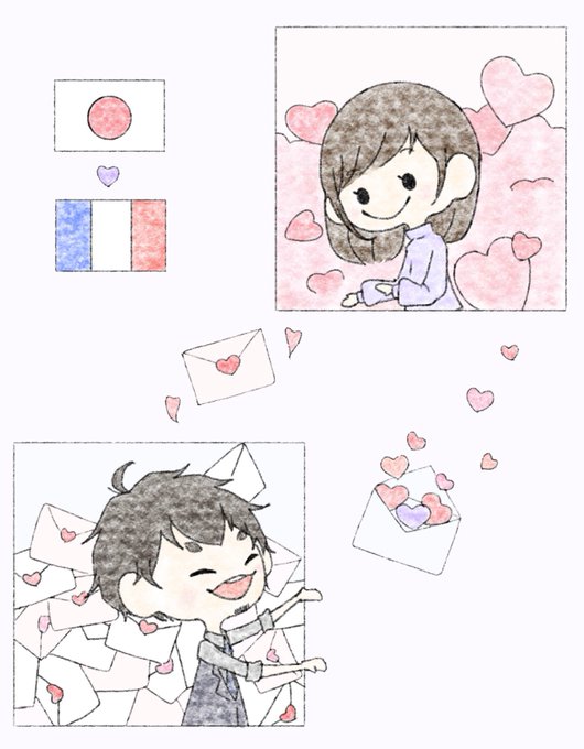 #スタマイ深夜の真剣お絵描き文字書き60分1本勝負 お題:ラヴレター 時間:2時間半くらい...? 【渡玲】 渡部さんがフランス出張してる間、2人で文通してて(ラブレターを送りあってて)ほしいなと思い渡玲にしました🇫🇷
