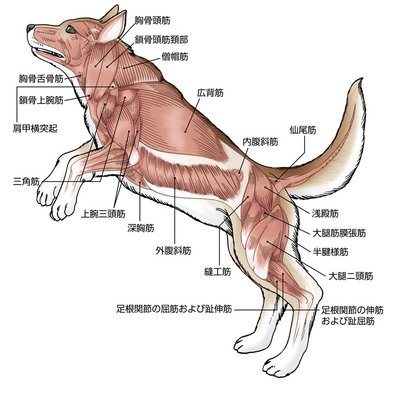 何気なく「犬 筋肉」で検索したんだがワンちゃんってめちゃくちゃマッチョな動物だったんだな。犬にも広背筋や外腹斜筋があってすごい発達してる。そして当たり前だが独自の筋肉の構造も面白い。