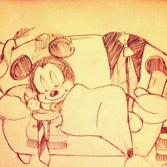 毎日お疲れ様、ミッキー(*^^*) またまた塗りまでいけなかった><#ディズニーミキフレ版深夜の真剣お絵描き60分一本勝負