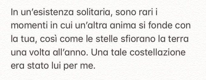 In un’esistenza solitaria,sono rari i momenti in cui un’altra anima si fonde con la tua,così come le stelle sfiorano la terra una volta all’anno. Una tale costellazione era stato lui per me.😿