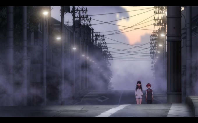 「ケムリクサここすきポイント」 セル画時代のアニメは主線の太さが一定なので、引きの絵になると自然と情報量が減って遠近感が出る…という描写をCGで再現している所。線に強弱がついているのも柔らかくて効果的。近年のアニメだとSSSS.GRIDMANも引きの絵が印象的でした。 #ケムリクサ