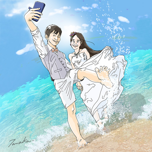 6月26日、下の姪っ子が結婚式。と言っても出席者ナシの二人だけ。 本来なら4月に沖縄で挙式予定だったけどコロナで中止・・。 沖縄イラストを記念にプレゼントしたよ。 #マンガ #イラスト #手描きイラスト #似顔絵イラスト #似顔絵