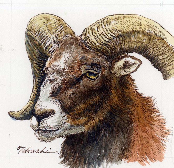 インドサイの原寸大油彩。ペンと透明水彩の小品、『インドサイ』『ムフロン』『ライオン』 #動物のイラストだけで興味を持ってくれる方へ届け