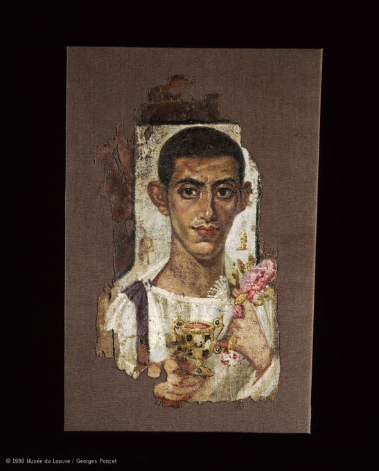 Thursday #PortraitChallenge!✏️ Portrait of Ammonios, a fragment of a funerary shroud painted by an unknown artist in Roman Egypt (30 BC - AD 392) @MuseeLouvre https://t.co/AzKfwVbFqe