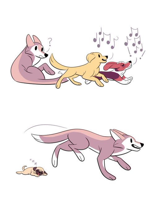 Heres the final panel by itself for reasons of me being v proud about all these dogs I drew 👍✨