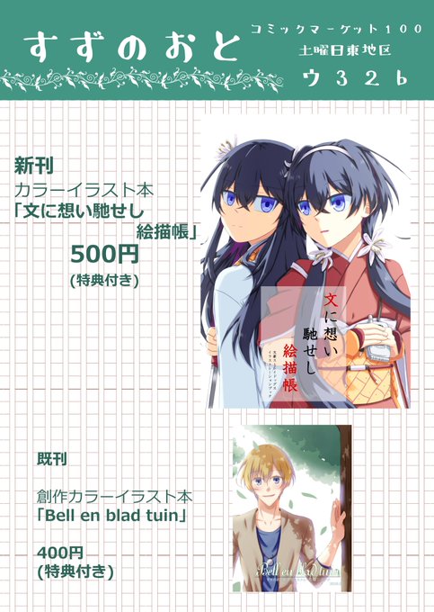サークルは【すずのおと】、参加日と配置場所は【1日目 土曜東ウ-32b】です!