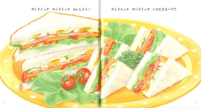 11月3日はサンドウィッチの日 に、ちなんだ絵本 【サンドイッチ サンドイッチ】 サンドイッチを作る工程を描いた絵本 厳選された食材の絵をさらに厳選しているので とても美味しそう😋 完成されたリズミカルな文章も楽しく 口を挟む前に具材を挟みたくなること請け合いです😁