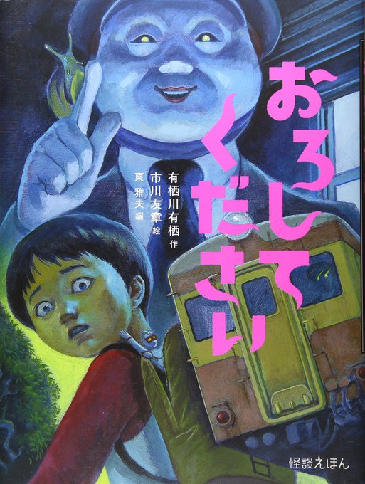 7月24日は劇画の日 に、ちなんだ絵本 【おろしてください】 裏山を探検していた「ぼく」が 道に迷ってたどり着いた『比良坂駅』 到着した列車に乗り込んだけれど 人間の使う路線ではなくて・・・ 落とし物が文字通りオチに繋がっている 劇画調の絵と展開も秀逸なホラー絵本です😱 冷え過ぎ注意❓
