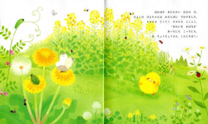 8月7日は花の日 に、ちなんだ絵本 【ぴよちゃん と ひまわり】 向日葵の種を拾ったぴよちゃんが 葉っぱを増やして食べようと画策し育てます 向日葵と過ごす時間が楽しくなり友達になりますが・・・🐤🌻 出会いと別れ、寿命の違い、共有する時間のかけがえの無さを 感覚的に子供心に刻む絵本です😌