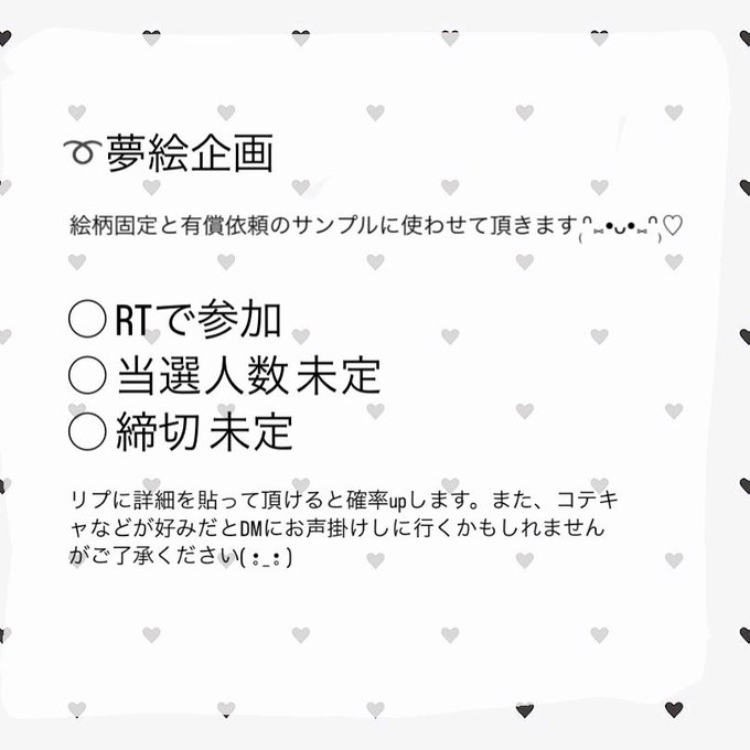 夢絵企画です(ᐢ ܸ. .ܸ ᐢ)՞ ՞ 〇RT 〇当選人数・締切 未定 1枚目の画像をお読み頂けると嬉しいです➰🎀 質問がある方はお気軽にDMまでどうぞ❕ #夢絵企画 #無償夢絵企画