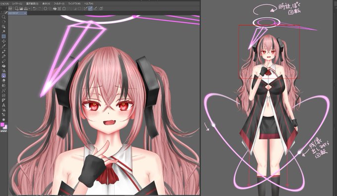 WIP! 髪と肌の塗りこみ増やしたり小物足したり頭の時計の針を追加したりした!