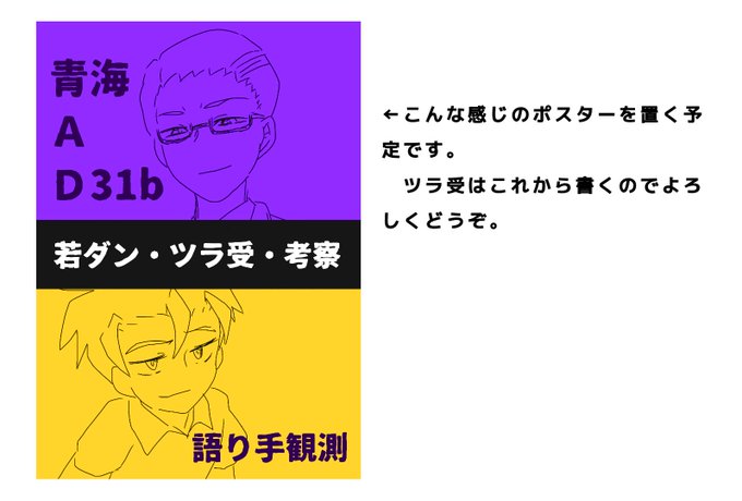4/28(日)進化イベントに参加します! 画像はお品書きと若ダン本サンプル、目印のポスターになります。