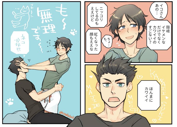 いこおき。 イコさんのかわいい枠にずっと入りたかったけど、いざその枠に入ったらめちゃめちゃかわいいかわいいされるのでたえられなくなって無理やん…ってなる隠岐です。