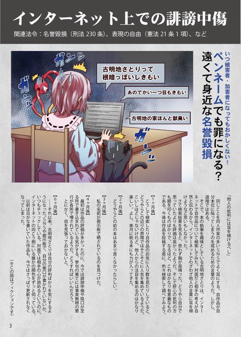 明日の紅楼夢「E-14a」では、夏コミ既刊の「同人作家のための法律対策本」も頒布いたします。こちらではネット上での名誉毀損に絡む案件を取り扱いました。どうぞよろしくお願いします!