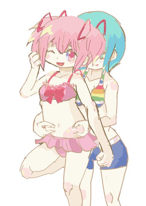 さやかちゃんにおなかつままれビキニまどっち #まどさや
