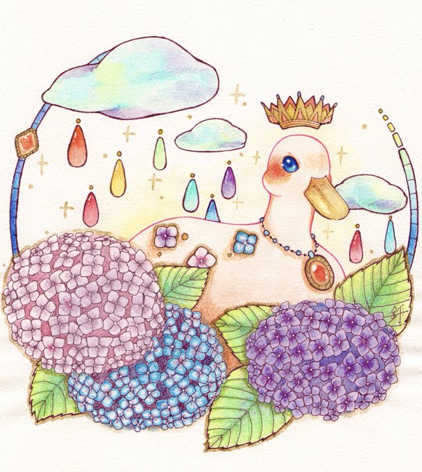 花アヒル #イラスト #創作 #水彩