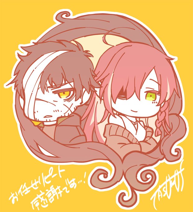 #skeb 昨日1件納品いたしました(ブーストまでありがとうございます…!)。殺意バリバリ異貌オッサン×それをいなす異貌美女とかちょっとドストライク過ぎましたね……たまらん。お任せ金額でのリピートさんということで、感謝のオマケも付けております。