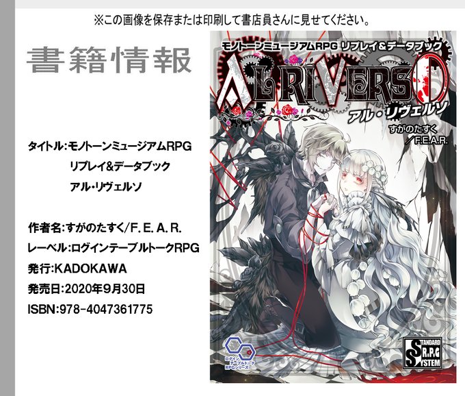 改めまして、モノトーンミュージアムRPGリプレイ&データブック『アル・リヴェルソ』本日発売です。ルルブ発売当時はこのような変化球の物語を描く一冊を出せるとは想像もしておらず…左の地を楽しんで下さる皆様のお力ゆえでございます。深い感謝を。これからも沢山の物語が巣立っていきますように…!