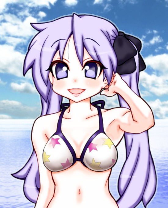 誕生日祝いツィートでTLがお祭り騒ぎなのでせっかくだから去年描いたビキニかがみん置いておきますね。今年のはもちろん今描いてるから待っててくれよな! #柊姉妹生誕祭