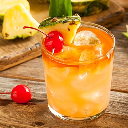 Так как Нами у нас крепкая фруктовая девочка, даю ей такой же крепкий и фруктовый тики-коктейль Май Тай с мандариновым ликером/соком вместо апельсинового. В нём алкоголь слабо чувствуется, так что не обманывайтесь и не упейтесь лол