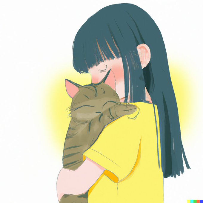話題の「AIにイラストを描かせる」DALL・E2で「黄色い猫を抱く少女」を描いてもらったら、かわいすぎてアイコンにしたい